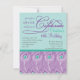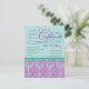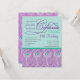 Teal and purple are the main colours of this glamourous, modern invitation. Illustrated by a gorgeous pattern full of peacock feathers and written in fancy fonts. Ideal for birthday party celebration of fashion ladies.