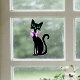 Fancy Pretty Black Cat Green Eyes Pink Bows Window Cling