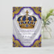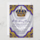 Fancy regal royal blue and gold prince birthday party invitation with blue and gold crown on a beautiful white royal blue and gold satin swirl background. This ornate any number blue and gold prince birthday party invitation is easily customized for your event by adding your event details, font style, font size & colour, and wording.