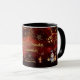 "Make it December to remember" is a cute hand-painted Holiday/Christmas Mug on a bright red background with a golden tree, featuring a snowman, a child, a squirrel, a raven, an owl, a bird, and a mouse. You can customize all text and make it yours, or a gift to family and friends. Would make a great stocking stuffer. Happy Holiday party!
