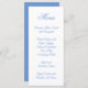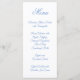 Dusty cornflower blue and white wedding menu.