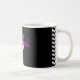 A black mug with a wave black and white pattern complete with your custom fancy script monogram magenta colour name in the centre. Just fill in the templates in the "personalize" feature and pick your style mug.