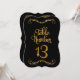 Table Number 13 DESIGN COLLECTION:  In black with a golden glitter metallic look with a dimensional effect that is perfect to coordinate with a wide range of weddings, bridal showers, business and formal reception events.  This is a hand lettered calligraphy font with scrolls, swirls and elegant handwriting lettering.  There is a lovely leaf swirl flourish at the top and bottom that accentuates the shape of the cut edge.  You will need a number stand or frame to use these effectively - which are not provided.  Available in numbers 1-25 stock, we can add additional numbers if your event is large enough to require them.  We can also do custom colour combinations for a small additional fee.  COLOR PALETTE:  Ebony black and Faux Gold Glitter Metallic Look