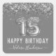 Fancy Silver Glitter Happy 15th Birthday Square Sticker