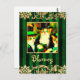 These fancy cats are all dressed up in hats for St Patty's Day, or perhaps St Catrick's Day, surrounded by deep blue and gold tripes and a gold-coloured (not foil) border. The phrase Blarney is printed in a whimsical script on the front. The back is plain to give you plenty of room to write your own message or Irish wish.
