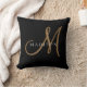Fancy Stylish Black and Gold Monogram Script Throw Pillow