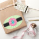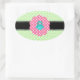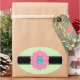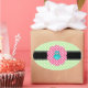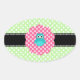 Cute turquoise/teal/aqua owl with green and white polka dots pattern background with pink polka dots scallop circle and black diamonds(faux diamonds, not real) stripe