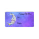 These gift tag labels have a fancy white crescent moon with colorful decorations and a pretty face with blue eyes and pink lips in a purple sky. Customize your text with the templates.