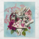 Colorized version of Alice in Wonderland's White Rabbit as a member of the Queen of Hearts court. Added floral on distressed blue background. Perfect for Mad Hatter tea parties and other whimsical events.