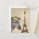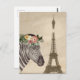 Vintage sepia tint background photo of the Eiffel Tower with overlay of beautiful watercolor zebra portrait with floral crown