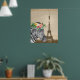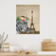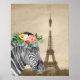Vintage sepia tint background photo of the Eiffel Tower with overlay of beautiful watercolor zebra portrait with floral crown