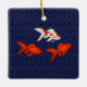 Fantail Goldfish on Seigaiha Wave Pattern Japanese Ceramic Ornament
