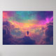 The poster is a picture with colourful colours and a dreamy atmosphere. The person standing alone in the middle makes you feel overwhelmed by the atmosphere in the picture. You can feel as if you are overwhelmed by the fantastic scenery by becoming the person in the picture.