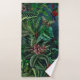 Fantastique fabuleux mystérieux design tropical de la forêt tropicale de minuit avec des feuilles tropicaux verts, des papillons et des fleurs tropicales rouges et roses.