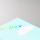 The unicorn is accompanied by a pair of fluffy white clouds with rainbow coloured text in between that says "Happy Birthday".