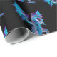 Fantasy Blue Fire Dragon Black Wrapping Paper
