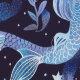 Blue and white fantasy mermaid pattern. Elegant, vintage feel nature inspired design. Removable peel and stick wallpaper is perfect for apartments, rentals, and short term housing. Peel and stick wallpaper lets you upgrade your small space home decor and personalize your rental with your unique design aesthetic. No more boring white boxes!