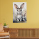Poster of two adorable rabbits, one large and one small, sitting side by side with joyful expressions amidst a soft, natural background. The gentle colours and delicate foliage around them create a serene and heartwarming scene.