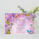Fantasy look butterflies and flowers Sweet 16 birthday invitation. You can personalize all the wording or customize the look further. The colours are bright and varied. There are a variety of butterflies of different kinds and colours and there are many different flowers as well for this fantasy garden design. It has a dreamy mostly pink / purple background.