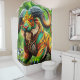 This shower curtain has a fantasy creature on it.