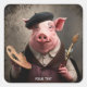 Fantasy Cute Artist Painter Pig Square Sticker