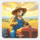 Fantasy Cute Dog Tractor Straw Square Sticker