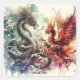Fantasy Cute Dragon Phoenix Ink Square Sticker
