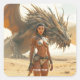 Fantasy Cute Girl Dragon Desert Square Sticker
