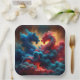 Fantasy Cute Red Blue Dragons Paper Plate