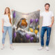 Fantasy Cute Robin Snow Flowers Fleece Blanket