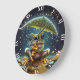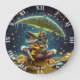 Fantasy Cute Umbrella Frog Rain Large Clock