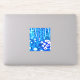 Sticker in a semi-abstract illustration of a fantasy forest with flowers, foliage, trees and birds, in shades of cobalt blue and white