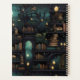This planner features a fantasy library bookshelf that looks as though it's built inside ancient ruins. The design is primarily teal, black, brown, and light yellow. The design is the same on the front and back covers. Personalize the front with the current year.