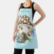 A cute grey little mouse in a blue bathrobe holding their morning coffee mug. In behind the cute mouse is the mushroom house with flowers all round