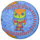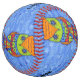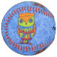 This custom softball is done in shades of blue with fantasy owls in neon colours of orange, green, and red with blue star shaped eyes. Customize your text with the templates.