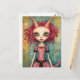 Fantasy Pink Cat Alien Woman Mixed Media Postcard