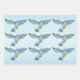 This set of wrapping paper sheets are light blue with a repeated image of a fantasy flying bluebird with a pretty face and yellow accents. It has a scrolled yellow tail.