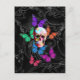 Chic elegant sophisticated girly, cute romantic fantasy skull and beautiful colourful multicolored butterflies, digitally collaged, on a black vintage Gothic Baroque background pattern, perfect for day of the dead or as a pretty goth gift for her. Visit the LEATHER_AND_LACE STORE for more alternative gothy gifts. This design was created from a vintage skull and some vintage colourful butterflies and a stylish black swirly floral damask background, which was made from a photograph of an old gate. This stylish day of the dead style design would make a great gift for her. Goth alternative girls would love this pretty romantic original design. Easily personalize this by adding your name or text to create a persona gift that she will love.