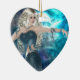 Ethereal blue sky - full moon glowing through the clouds- Beautiful blonde Moon Goddess, Sky Siren pointing to her beautiful White dove carrying a single rose