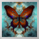 Fantasy Steampunk Orange Butterfly Aqua Watercolor Poster
