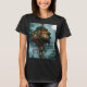 Beautiful t-shirt design created using AI rendering software features a mystical, magical, fantasy treehouse on a moonlit night.