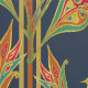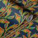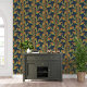 Fantasy vine of gold, red, gree, leaves on navy wallpaper
