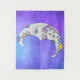 This wall tapestry has a fantasy white moon with a face and brightly coloured abstract geometric shaped accents in yellow, blue, and purple in a hazy purple sky with dotted white stars.