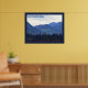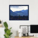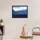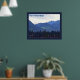 A depiction of summer in the far north. Blue mountains, blue lake water, dark green trees, pink fireweed (Epilobium augustifolium), and overcast. Customize by adding your own text.