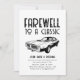 If you love simple, this simple style invitation is right for you. The invitation features an elegant design, with a soft, white background with a vintage Dodge Charger car. In the centre, the party details are beautifully scripted in a black block vintage font exuding an air of sophistication. Welcome guests and honour your retiree, with this retirement party invitation. Background colour and text is editable.