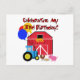 Kids who love farms and farm animals will love this colourful, fun Farm 3rd Birthday design featuring a red barn, blue tractor, pig, chicken, balloons, and text that reads "Celebrating My 3rd Birthday!".