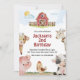 Farmyard Friends Invitation! Featuring a charming barn design adorned with adorable farm animals, this invitation sets the stage for a celebration filled with laughter and joy. Plus, all the text is editable, so you can add your personal touch and make it extra special. LANE01