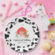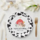 cute farm animal birthday party plates with cow print. Oink Moo Cock-a-doodle doo