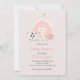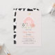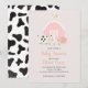 Cute farm animal farm baby shower invitation with cow print back and pink barn.