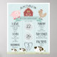 This cute and modern boy's1st/first birthday milestone poster features a pig, chicken, and cow with a red barn on a baby blue background. Personalize for your needs. You can find matching products at my store.